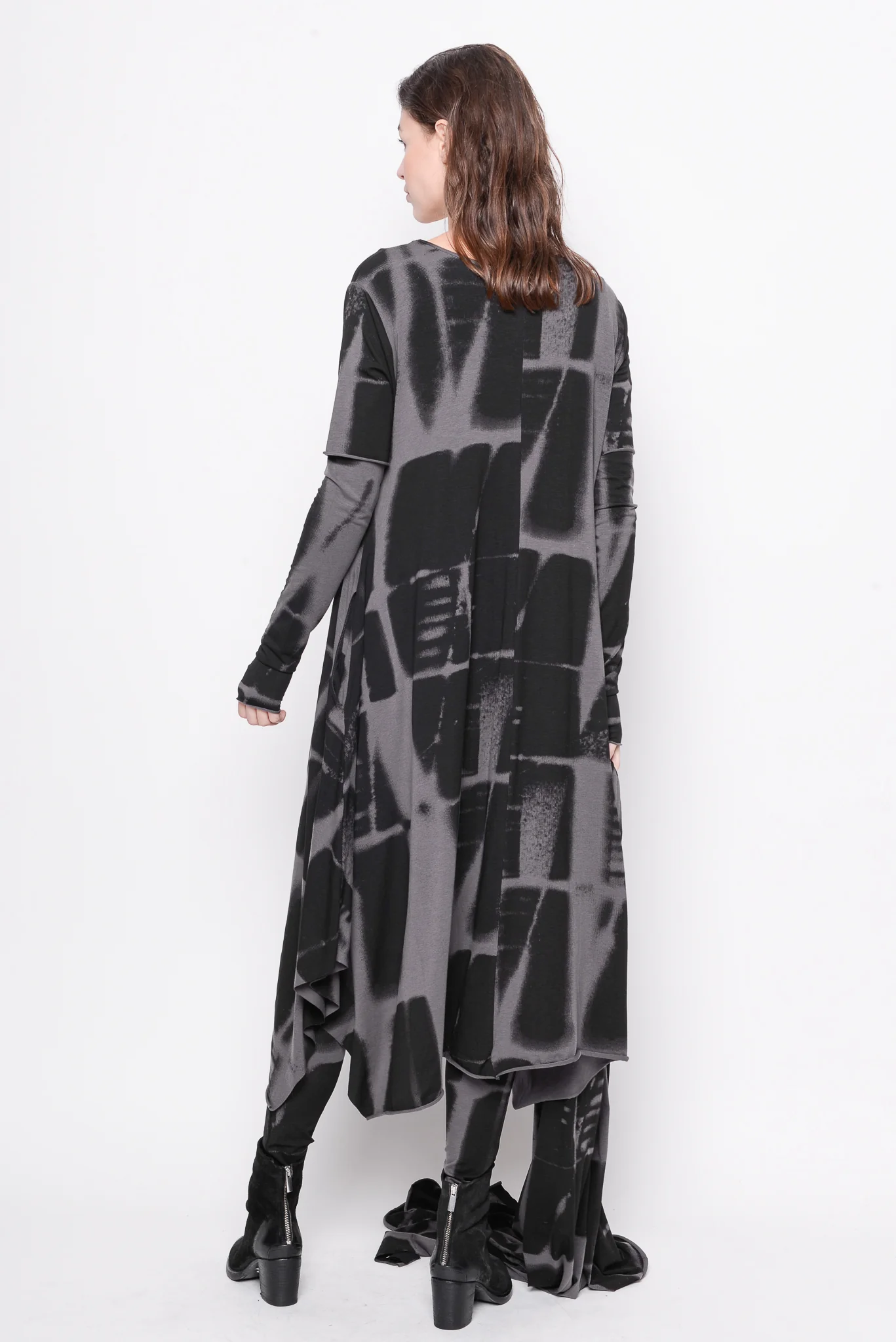 Elevate your style with our ankle length A-line dress. Made from a blend of lyocell and cotton with a slight stretch, this dress is not only comfortable but feels light and smooth on your skin. Featuring medium length sleeves, side pockets and a fitted top with an oversized bottom, it's available in black, iron, black and white print, and black and iron print. Perfect for any occasion, don't miss out on this versatile addition to your wardrobe!