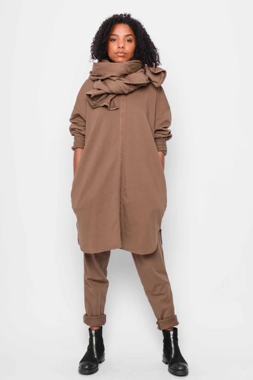 Blending minimalistic style and functionality effortlessly. Featuring two pockets, an elongated back, and tape details, it exudes a unique and fashion-forward vibe. Crafted from 100% Cotton jersey mid-weight fabric, this tunic ensures utmost comfort against your skin. Available in Oil, Atlantic, Clay, or Black, choose your preferred color to express your individuality. Embrace the perfect combination of comfort, artistry, and fashion with this stylish tunic.