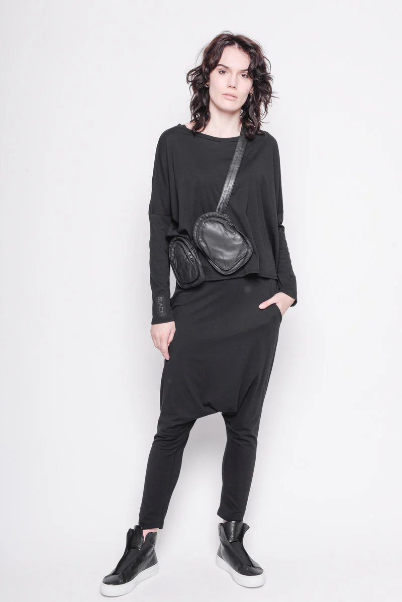 - OUTSIDE: A SIMPLE CROSS BODY OR BELT BAG WITH TWO POUCHES BOTH WITH 2 POCKETS CLOSED BY A ZIPPER