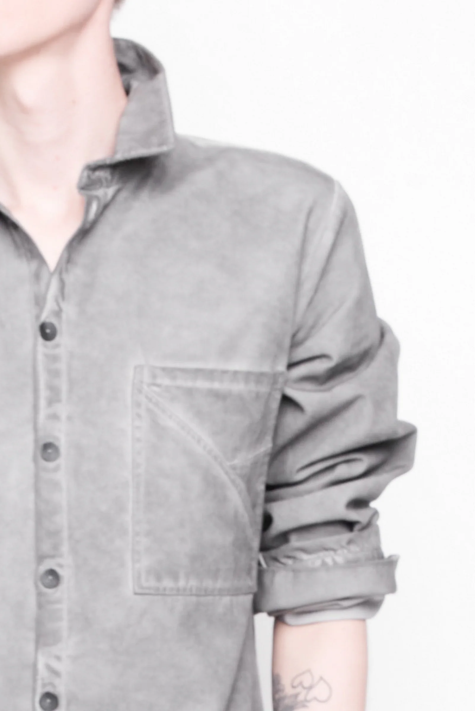 The buttons used to close the blouse are discreet, further emphasizing the minimalist design. The blouse is available in both black and cold-dye grey, allowing for easy pairing with a variety of other pieces in your wardrobe.