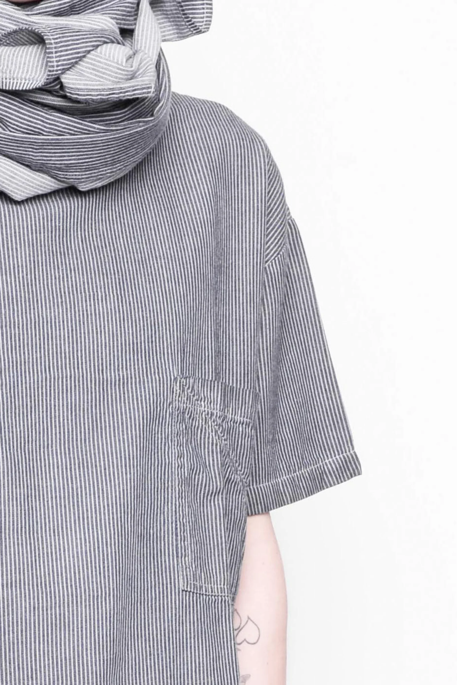 This is our classic big shirt made from a striped fabric that is perfect for creating a bold statement in your wardrobe. The shirt features drop shoulder sleeves and one chest pocket, adding to the streetwear edgy style.