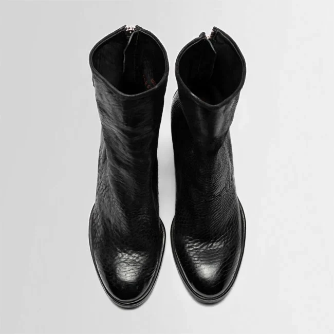 DARLA is high heel back zip boot constructed on a leather heel and footbed