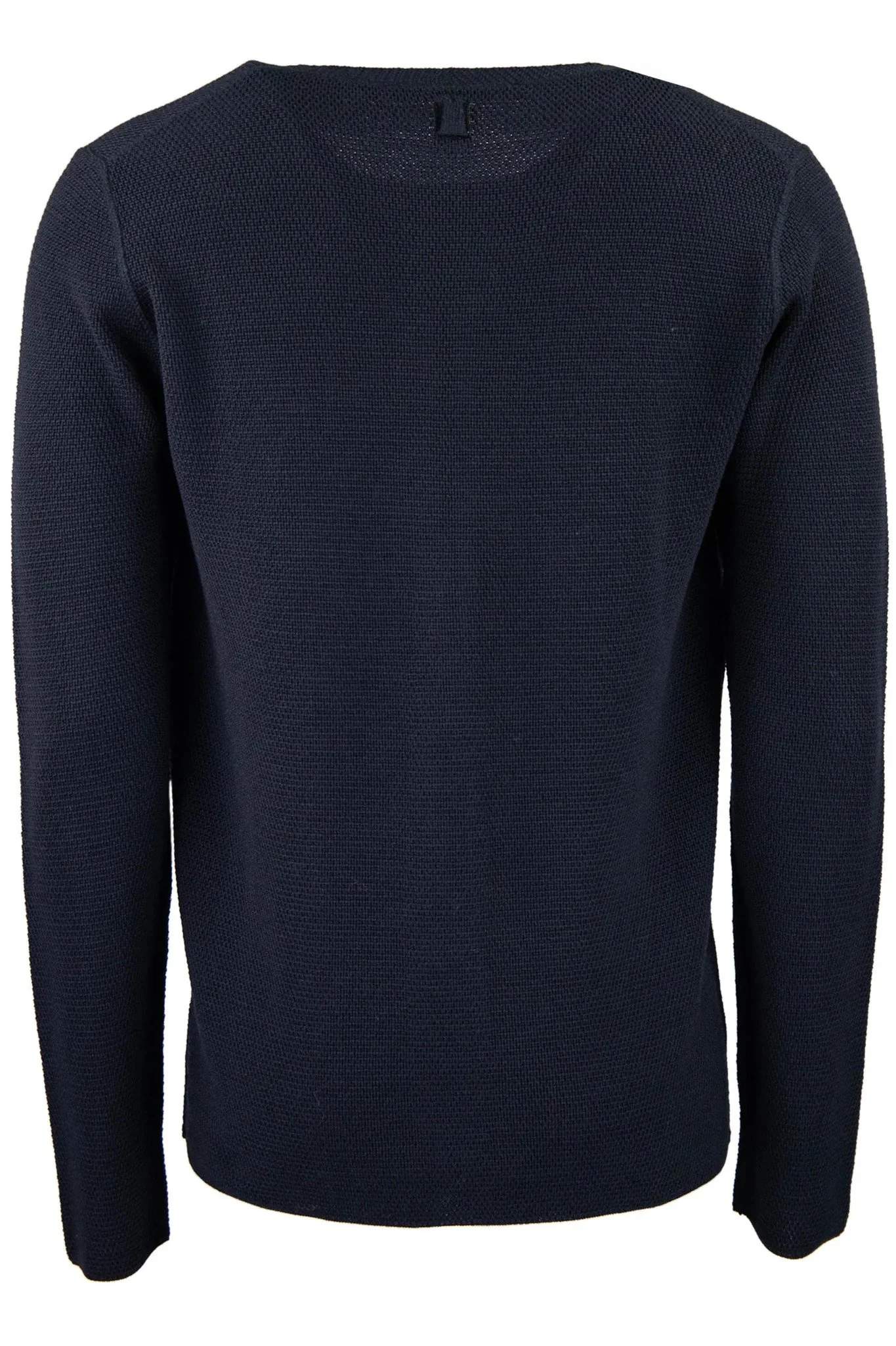 This round neck sweater in 100% merino wool is a delight to wear. The warm deep dark blue color with an undertone of purple adds to the sophisticated look.
