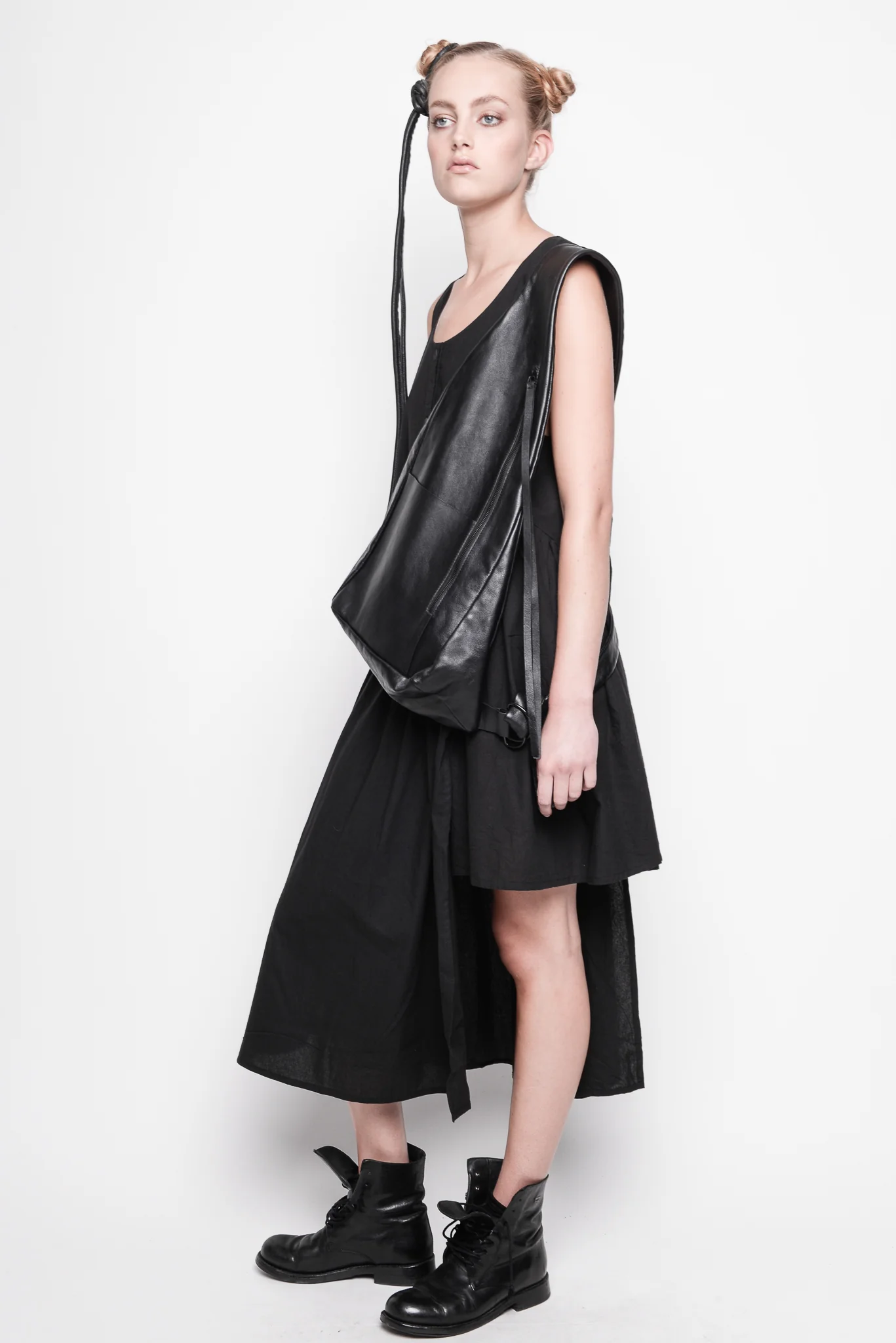 This luxurious ID.01.02.01 100% cotton dress in 100 BLACK is the perfect choice for the fashion-savvy. It is cut from a luxe double-layered fine woven poplin fabric, with an a-symmetrical cut-out and twisted fabric detail creating a graceful drape. It also features two pockets for convenience. This exclusive piece is the perfect blend of comfort and sophistication.