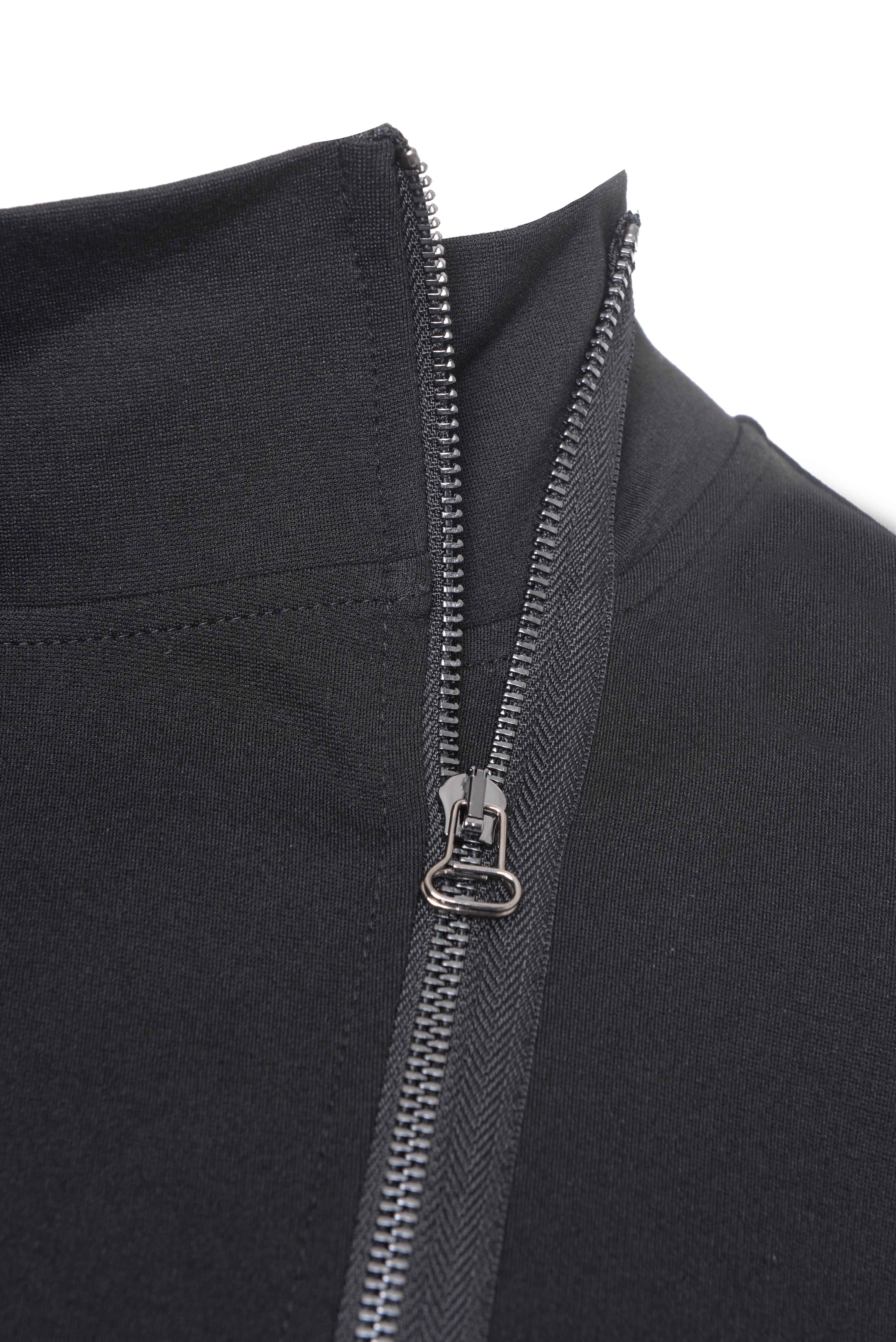 This tricot Pal Offner jacket is spicy short, but long enouch to wear as a coat this fall. Zipp up for a strong look, play with it, make it your own. The fabric moves with you. Side pockets to warm your hands. The Asymetrical front makes it a playfull jacket, but timeless at the same time. Deep black, so combine it with all your other black pieces.