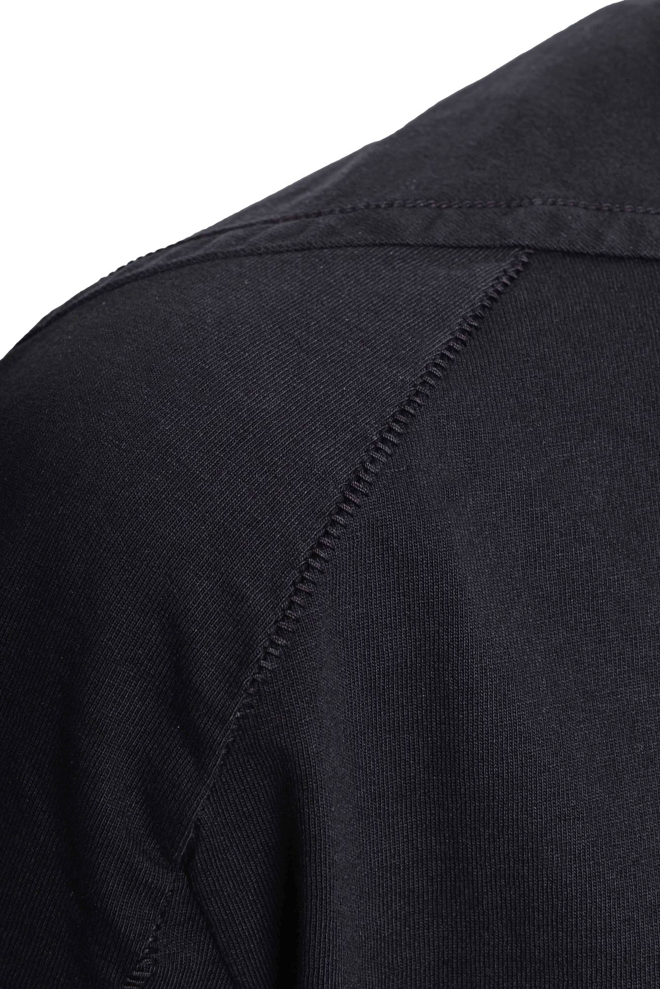 Loose-fit thick cotton jersey T-shirt. Knitted collar. Special stitching on the collar and the cuts of the sleeves. Inside patch on the nape. Garment dyed.